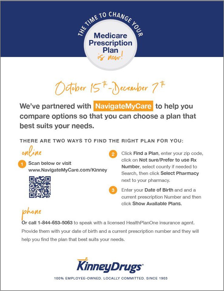 Kinney Drugs accepts most Medicare Part C and D plans.